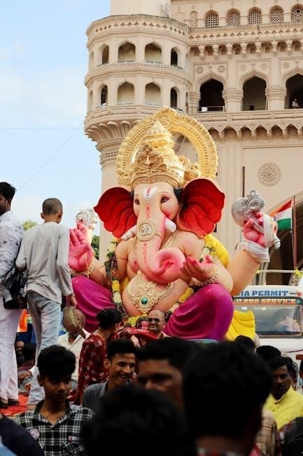 Ganapati Atharvashirsha, available as a PDF, delves into deity symbolism and spiritual practice. Understanding its verses unlocks profound philosophical insights for devotees.